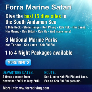 Forra Diving started offering the first live aboard trips from Koh Lipe in February 2009. Our Marine Safari now offers the top 18 dives in the south Andaman Sea.
