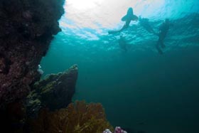 Shallow pinnacles like Stonehenge, Jabang or Phi Phi Shark Point,